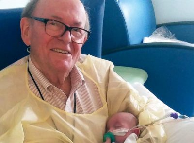 Un abuelo que pasa la noche sosteniendo bebes prematuros para que no estén solos